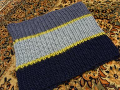 少し前から、次男のウクライナ行きの荷物に入れるために編み物をしていました!!じゃ~ん!!できあがり~ 腹巻き!? いえいえ、ちがうんです・・・ ネックウオーマー!!なんです。 こうやって、2重に巻いて首元を温めようと思って・・・ (今回のモデルは長女です・・・)マフラーはなが~く編まないといけないし・・・ 結構、毛糸もいるからなあ・・・ 考えに考えて・・・この形にしました。 ざっくり極太の毛糸で編んだので編み上がりが早くてすぐに出来上がりました~ 折るところを変えれば、出てくる色も変わるので~す♪ 長女にも長男にも編んであげるからね~♪って言っていたら・・・ どこかからすっ飛んできたダーリン。 「あれ~、俺のは~!?」