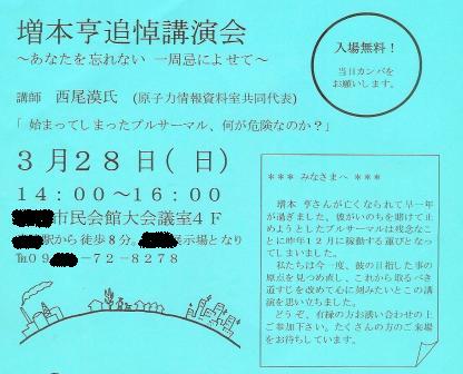ビル・ゲイツさんも「原発利権」参入だそうです。東芝と組んで、100年燃料交換しないでよい次世代原発を作るとか。。http://headlines.yahoo.co.jp/hl?a=20100323-00000480-yom-bus_all玄海原発1、2号機も発電開始から35年経って、内部情報では、強い放射線で配管もコンクリートも鉄筋もぼろぼろ、、人間でいえば動脈硬化が進んだ血管のように、いつ破裂するか分からない状態だそうです。そもそも100年もつ原発なんて、無理無理。。^^今後20年で世界中で原発を数100基建設予定とか、危険を冒してまでそんなに原発を作って、石油が枯渇したら、維持管理ができずに放射能まき散らし放題になりますよ。なぜなら、原発は石油がないと建設はもとより維持管理ができないからです。そんなことより、エネルギー半減を目指すべきですね。というわけで、増本亨さんの追悼記念講演会が3月28日(日)にあります。彼も白血病で亡くなりました。玄海原発に近づき過ぎたせいでしょうか?当地の白血病罹患率は全国平均の3倍、玄海町のそれは10倍です!http://blog.goo.ne.jp/kmjcp/e/93b088957884693635f5faf568a9d0ed玄海町のおくやみ情報はマスコミには出ません、あまりも不自然だからです。原発のある町はどこでも同じだそうです。。会場で「ガイガーカウンター」の予約販売もいたします。放射能は目には見えません、危険から身を守りたい方は、ぜひお買い求めください。http://plaza.rakuten.co.jp/mabo400dc/diary/201003130000/
