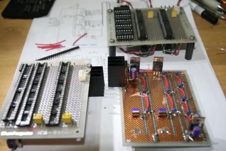 上の基板が以前作った16bitのDAC(ディーエーコンバータ:デジタル>アナログ変換機)。下の2つが今回製作中の24bitのDAC、電源周りができたところ。こういうのをディスクリート・ロジック回路と言って、超原始的な回路。デジタルの基本原理が解れば作れるという回路です。こんなのを作る人は今時皆無でしょうね?これを作っていると、よく世間で言われているデジタルとかアナログとかのイメージはやったことのない人の幻想に過ぎないということがよく分かります。実際にはデジタルとアナログの境界は極めてあやふや、ここまではデジタル、これから先はアナログだよ、、なんて決めることすら無意味なのです。この辺りの考察はまたする機会もあるかもしれませんね。。今度の金曜日にオーディオ関連のイベントがあるので、それに間に合うように製作中!間に合うかな??