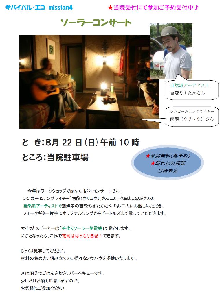 8/22(日)10時~!うちの駐車場は狭いので、うちを知っている人だけのご案内です。どうぞ、本物の独立型ソーラー発電を見に来てください。^^/アコギ片手に懐かしいフォークやロックサウンド、オリジナルソングの生演奏をソーラー発電のPAでお聴かせいたします。