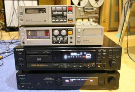 アナログ録音は物理的な磁気テープの単位時間当たりの面積に音質は比例する。もちろん磁気ヘッドや電気回路でも大きく変わるが、38cm/sと比べると、カセットテープがいかに良くなろうと4.75cm/sではその音質に限界があるのは仕方がない。つまり高音質を求めるとお金がかかるということです。ある時テープデッキの最大テープ送り速度(早送り)で録音再生してみました。その音質のすばらしいこと!筆舌に尽くしがたいものがあり、鳥肌が立つ音というものはこういう音です。・・それ以来、音質追及はどうでも良くなりました。高速で回すとそれなりに問題は出てくるし、きりがないね。。そういう経験もあり、次第にレコーダーはデジタル化の方向に関心が向き始めました。デジタル録音はVTRができれは必然的に生まれるものです。日本では世界で初めて中島平太郎氏を中心に69年にNHK技研が試作機を発表し、72年にはコロンビアがデジタル録音を始めています。最初のPCMレコーダの自作記事はラジオ技術の1976年10月号、早大の山崎芳男氏等によるもので、この方は今でも最先端1ビット録音の第一人者ですね。自作も考えましたが、文系から理系に鞍替えしたりしているうちにだんだん時間的にも資金的にも余裕がなくなり、市販機が成熟するのを待つことにしました。最初の市販機は13bitながら早くも77年にS社のPCM-1の発売。84年に14/16bitのポータブル機PCM-F1が、同時にPCM-501ESの発売。これらの機械は今でも現役で使用可能だが、デジタルでの入出力ができない。デジタル出力基板をPCM-501ESに増設しているので、fs:44.056kHzだが、過去の録音をデジタル出力することはできる。S/PDIFのタイムチャートを理解し、PLLを使ったDACを作ったことがあれば、それほど難しくはないと思う。CS8402A+HC4046+HC4040でCX20017を乗っ取る、といえば解る人には解ったはずだ。 VTRと組み合わせるPCMアダプターが出れば、必然的に一体型が出ることになり、そして小型化が進む。初期のDATは44.1kHzでのデジタル録音ができなかったりとCDとの著作権がらみでいろいろ制限はあったが、DATそのものが普及する前に、CDのPCでのコピーは当たり前になり、さらに世の中はラジカセから圧縮音楽のMDを経て、一挙にMPEGなどのダウンロード音楽へ移り変わってしまった。DATはF社のDAC/DF(TDA1541A/SAA7220)が使用されているということで、89年発売のS社のDTC-300ESを購入。その後ポータブルのTCD-D3を90年に、TCD-D7を93年に購入している。サンケンのCOS-11と組み合わせて撮った生録テープは多量に溜まっているが、COS-11は高域にピークがあるので、HS-400ではそれが気にはなる。一般には取りざたされていないが、HS-400ではそれが良く分かる。 これらの機種はfs:48kHzの機種で、44.1kHz変換時には音質の劣化に気を使う必要がある。またこれらは所詮VTRメカなので、壊れやすい欠点がある。壊れる前にHDDに吸い上げておくか、データ自体は磁気テープの方が安定なので、現行商品が無くなった今、データストレージ用のDATを買うか検討中だが、どうせ当分そんな暇はない。PCMアダプターやDATの音質は十分に納得できるもので、最近の安いメモリーレコーダよりもはるかに音は良い。ただPCにデータを吸い上げるとなると1倍速なので、時間がかかる。この辺りが実質的なコピープロテクトとなっているのだろう。しかし、最近はうちでもメモリーレコーダやHDDレコーダが主流になっている。DATに比べると取り扱いが煩雑ではなくPCとの連携が容易だからだ。これらのメモリーレコーダも安物はだめで、特に低消費電力のものは最悪に音が悪い。今のところ、手元に残っているレコーダはこんなところです。いずれも現行商品。S社のPCM-D1、ADコンバータの音は良いが、内蔵マイクはPCM-D50の方が良い。外部マイクを使うならPCM-D1の方が音が良い。そのまま使うなら総合的にはPCM-D50の方が良いと思う、まずマイク感度が高いのでS/Nが良い。どちらもDACは外部DACを使うことをお薦めする。 その他F社のFR-2も音が良い。消費電力があまりにも少ないものは敬遠した方が良い。http://www.fostex.jp/user_file/fostex-sh/etc/fr2.pdfこの3年程のお気に入りはKORGのMR-1000だ、HDDレコーダで比較的安価、音の劣化が少ない。DAコンバータも音がよくそのままパワーアンプにつないで聴くことができる。 というか、再生システムがB&K4190~MR-1000~YAMAHA B-I~HS-400(HS-1000)で迫真と言ってもよいほどの原音に忠実な録音再生音になる。PCにつなぐUSBオーディオ・インターフェイスはローランドのUA-25を使っているが、これはこれからPCオーディオがどうなるかも含めて検討中だ。そうは言っても、UA-25の音は悪くはないので買っても損はしない。USB~S/PDIF変換器としても使える。やはり、DSDや24bit96kHz~の高規格での録音はCDの16bit44.1kHzでの録音との違いに気がついてしまうと後戻りできないものがある。これからは、音質拘り派にはメモリーカードでのメディア頒布が普及する可能性はある。データ量が膨大過ぎてコピーを作ろうという気が起きないのは強力