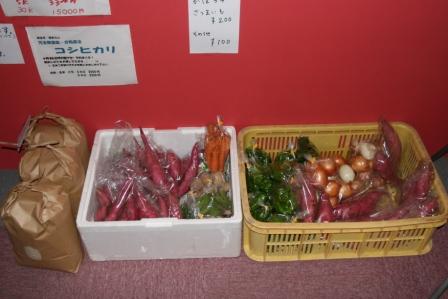 お米、キュウリ、ピーマン、ニンジン、玉ねぎ。いつもあります。自然農法なので、きれいではないけどね。