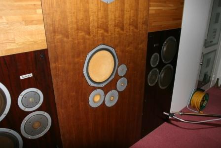 1979年に日立製作所(当時)の河村信一郎氏によって開発されたHS-10000は人間の可聴帯域をフラットに再生可能なスピーカとしては、今でもその性能をしのぐ物は現れていません。というより「スピーカの原器」として永久にその名を残すでしょう。世界に4台しか現存せず、その内の1台はNHK技研にあります。そして残りの3台は個人所有ですが、全て動作しています。今日はそのHS-10000の周波数特性(f特)を測ってみようということで、PCやらマイク(B&Kの計測用)をセットしてTrueRTAというソフトで計測しました。部屋は無響室ではないので、通常のマイク~スピーカ距離1mではなく、50cmで始めました。これが50cm、 25cm、