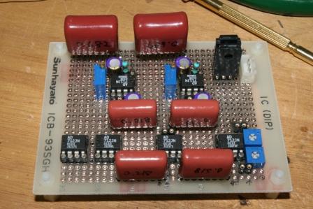 チャンネルデバイダーとつないで音出ししてみました。チャンネルデバイダーは2種類持っています。昔から使っているのは1995年製のRolandのAP-700 2台で、出力のI/V変換OPアンプを交換して、LPFの部品点数を減らしました。これだけでもずいぶん音質は向上しています。ただ、昔の機械なので16bit48kHzまでしか対応していません。一番上の黒い箱はデジタル入力セレクターとLR信号2系統をLL、RRに変換する回路が入っています。もう1つは現行商品のベーリンガーDCX2496です。【送料無料】【代引手数料無料】ベリンガー BEHRINGERチャンネルデバイダーDCX2496【送料無料】よくできたチャンネルデバイダーなのですが(安いし)、音質が今ひとつ。。何度聴いてもAP-700改に負けているように聴こえます。下の機械はサンプルレートコンバータのSRC2496です。なくても動作します。それではDCX2496に外部DACを付ければ音質が向上するのではないかと思って。DCX2496にS/PDIF出力を付けたり、DACを自作しようとしたり、安いDACを仕入れたりしましたが、どうでしょうか?試聴はこれからです。HS-400のオリジナルにも付いているのですが、高域共振や、foをコントロールするためのイコライザーの設定をします。MH-35用とL-205用です。試聴結果は後ほど。