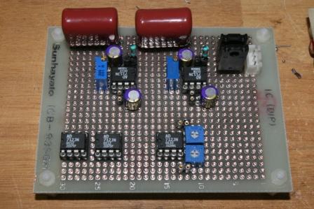 2回積分回路(fc:7.23Hz 2次LPF)+両波整流回路+0.2sピークホールド回路各2ch分。やっと完成!表裏