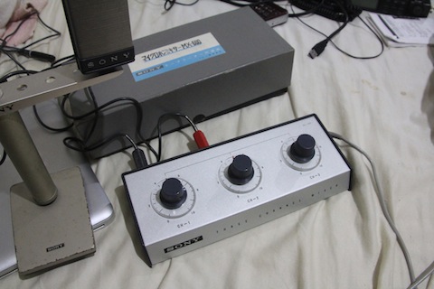 SONY MX-600 は、モノラルのマイクロフォン・ミキサーで、3系統の入力を1つにまとめて出力する装置です。60年代中頃の製品でとても堅牢な作りです。60年代は1964年の東京オリンピックを皮切りに、日本の高度経済成長期であり続けましたが、ものつくりに関してはまじめな製品が多かったと思います。どういうことかというと、なるべく壊れないで長もちすること、という設計思想です。70年代になると、「消費は美徳」と言った宰相もいましたが、適度に壊れて、新しく購入していただけるような作りになっていきます。それが経済成長だ、という考え方が底流に流れていて、ソニータイマーというのも意識的にそういうことが行なわれていたということは無かったにしろ、結果的にはそういうことになっていたのです。