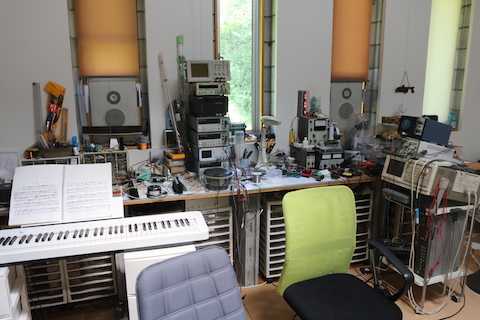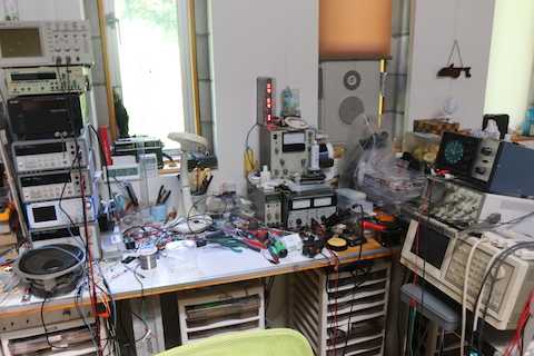 このところ機械器具、部品等が増えたので、天井高3.4m、20畳の部屋が狭くなったw
