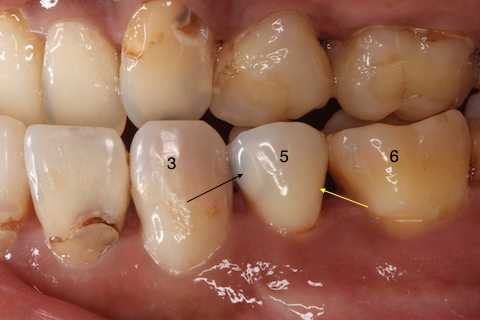 以下は術前の画像だが、5番にも6番にもクラックはあるので、これだけではどちらが沁みているのか特定できない。