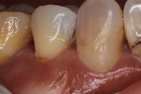 そもそも冷水痛とは何か?ということだが、歯髄に軽い炎症があるということだ。知覚過敏症という歯が沁みる病態がある。これは象牙質が露出しているのが原因とされているが、露出しているだけでは知覚過敏症にはならない。加えて歯髄の炎症が必要になる。その軽い炎症の原因は虫歯やクラック、修復物の隙間から細菌や電解質の侵入、咬合性外傷による歯髄梗塞が主な原因だ。もちろんCRの剥がれや破折、気泡や接着不良も考えられるが、術中の画像解析では術中の不手際は確認できない。