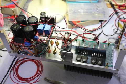 電源ラインはφ1.6のIVケーブルを剥いてプラスマイナス2電源。グランドは銅板。
