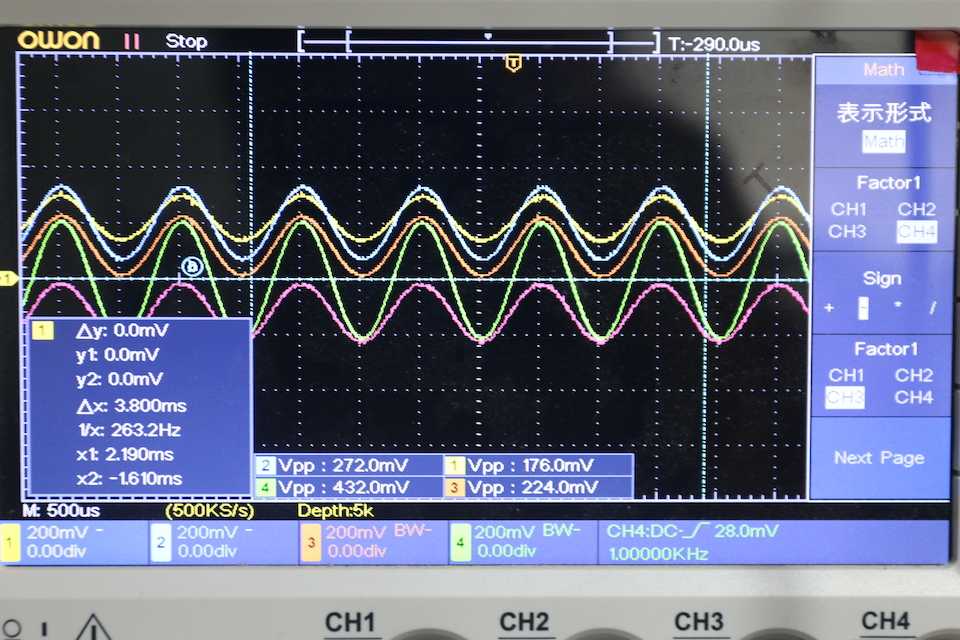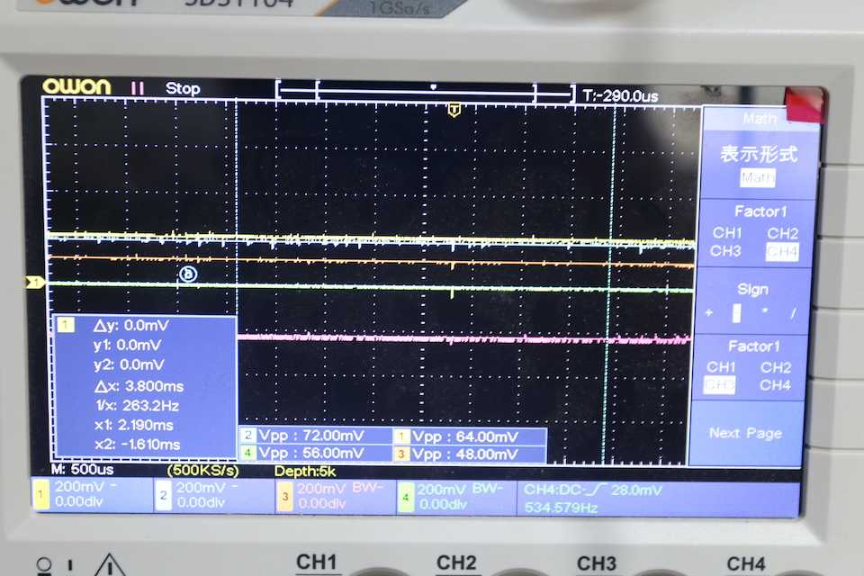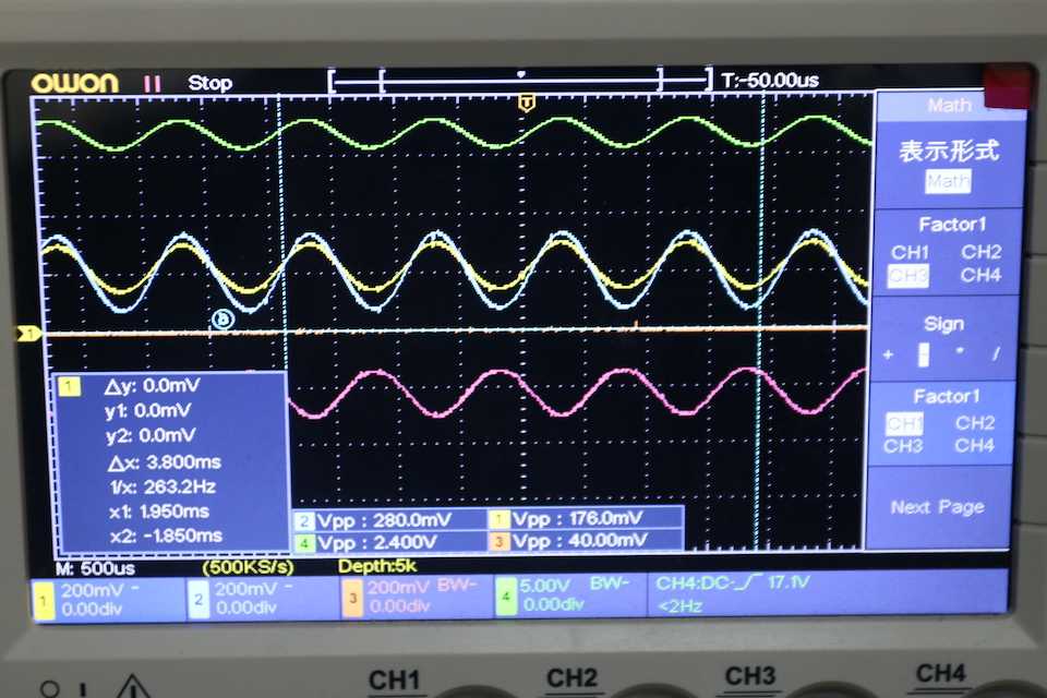 ちょっと疲れたので、以下のオシロスコープ画面の説明は次回にします。