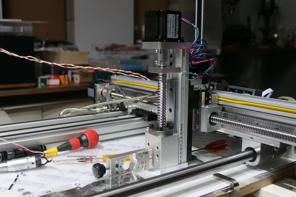 Y軸との取り合いを見て、取り付けパーツの採寸をしているところ。