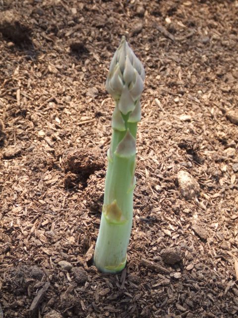 先日チラとご紹介した『芽』あれはアスパラの芽でありました育てているC田さんに教わったのですが、普通のアスパラは植えて1年目から収穫するのだそうですが、C田さんの場合、最低3年は収穫しないのだそうです。そして、その間は有機肥料をたっぷり与え”株”をでっかく育てて上げるのだそうです。簡単に書きすぎていますが、肥料を与えれば育つと言うものでも無く、何もかも試行錯誤の繰り返し、相当苦労されて今に至っているんだと思います。最低3年・・・つまりその間は思い通りの収入が無かったでしょうし、始めは何度も枯らしたたと言っていたので、実際は3年以上辛い時間があったんだと思いますね。そんな訳で、C田さんのアスパラはでっかいです。味は果物のように甘く香りも豊か、大きいので噛み応えもあるかと思いきや、なんとスーパーで売っている貧弱なアスパラより柔らかい。C田さんのアスパラを初めて食べた時はほんとに驚きましたよ。(ボキャが無さすぎで、あの驚きをきちんと伝えられないのがもどかしい!)で、先日の芽がこんなに大きくなってました(前と写真と180度方角が違いますけど)でもね、このアスパラ凍傷にかかってしまって余命1日なんですって最近の激しい寒暖差に温度管理が追いつかなかったのだそうです。自分には凍傷にかかっているようには見えませんでしたが、C田さんは過去の経験から分かるのだそうです。写真の下の方の葉っぱが黒っぽい黄色に見えますが、それが凍傷した箇所で、あとはもっと黒くなって行くのだそうです。そしてアスパラ全体が黒く枯れちゃうのだそうです。合掌・・・