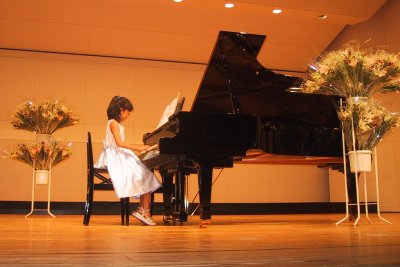 夕べ遅くまでかかって仕上げたワンピースを着て、ムスメ1がピアノの発表会。途中、つっかえたところもあったけれど、精一杯がんばっていた。あー、そこはもうちょっと強く、とか、うーん、左手の伴奏が大きくて、メロディーが聞こえないよ、とか、もうそんなコトいいや、って気分になりました。圧巻だったのは、トリの中2のお姉さん。幻想即興曲を自由自在に弾きこなしていた。おかしかったのは、それまで私の目の前でこっくりこっくり、居眠りしていたおじいちゃん。可愛い孫娘の出番は終わり、名曲が流れて、眠くなるよねーと思いながらゆれる頭を見ていた。ところが。ふと見ると、起きているどころか、身を乗り出して聴き入っている。出だしがffとはいえ、すごいぞ、彼女。またあなたのピアノが聴きたい!がんばれ♪♪♪