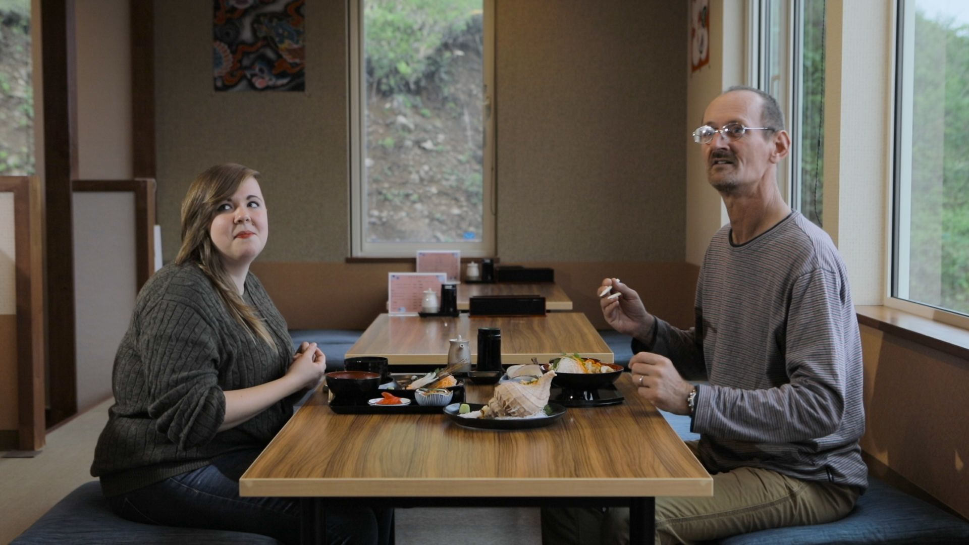 食べ物を食べるシーンでは、同じものを何回も食べ満腹に