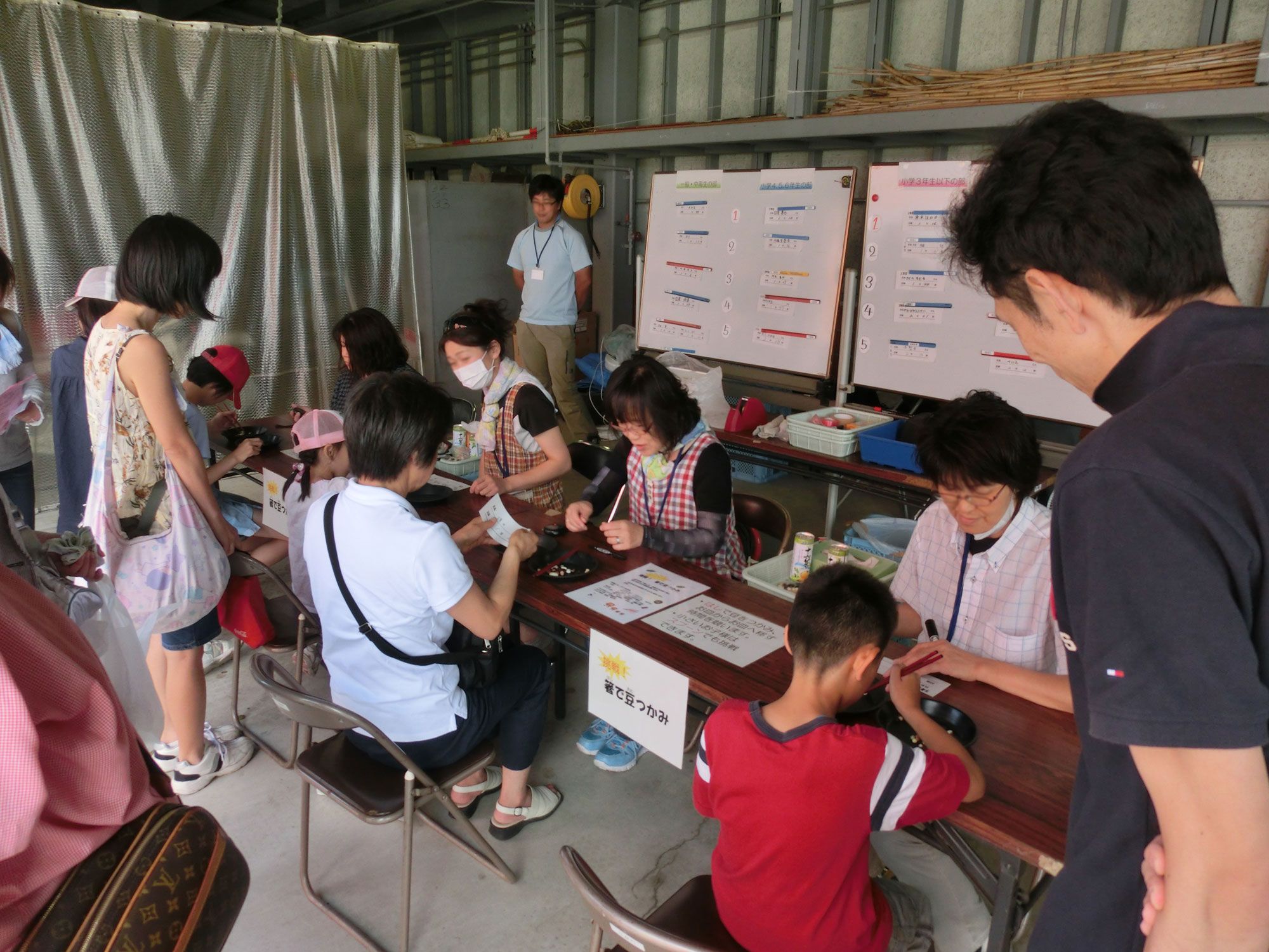 箸で 豆つかみ