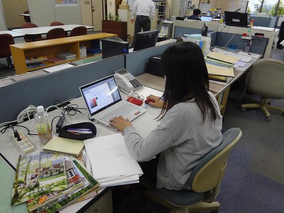 辻野建設さんで町内再生プロジェクトを検討している中で、Iさんは古い住宅をリノベーションしてアトリエを造ることを考え、図面を起こしていました。実務を経験できるということで、楽しそうに仕事をしていました