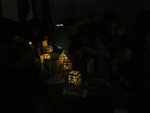会場を真っ暗にし、折り紙とLEDライトで製作したランタンに灯りをともすと、とても幻想的なパーティーとなりました!