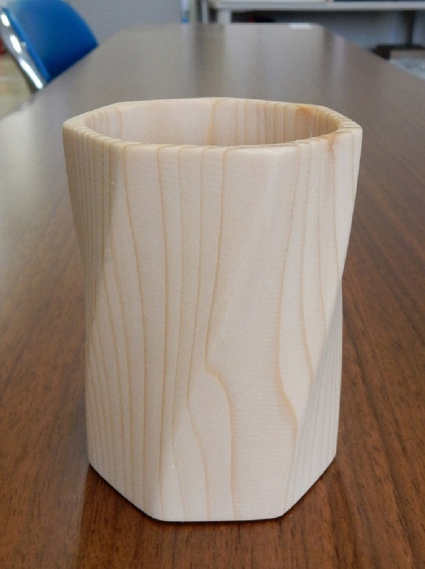 このペン立ては、3Dターニングマシンという機械で、木材をくりぬいて作られています。道北地域(留萌)教育旅行受入推進セミナ… 2023.09.05