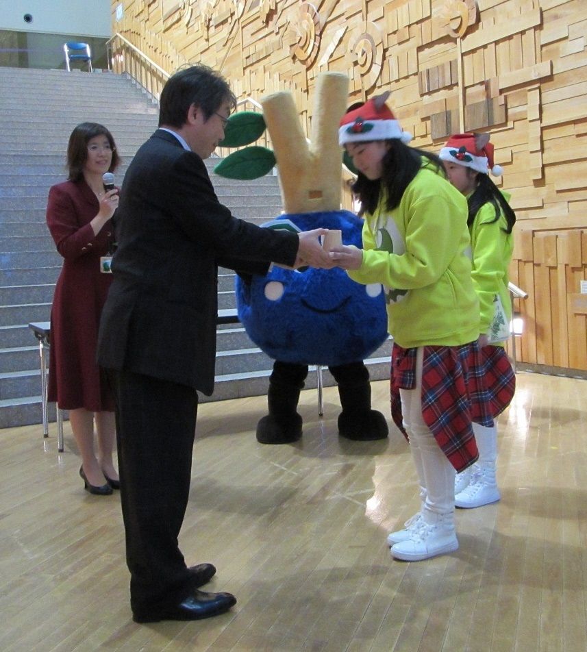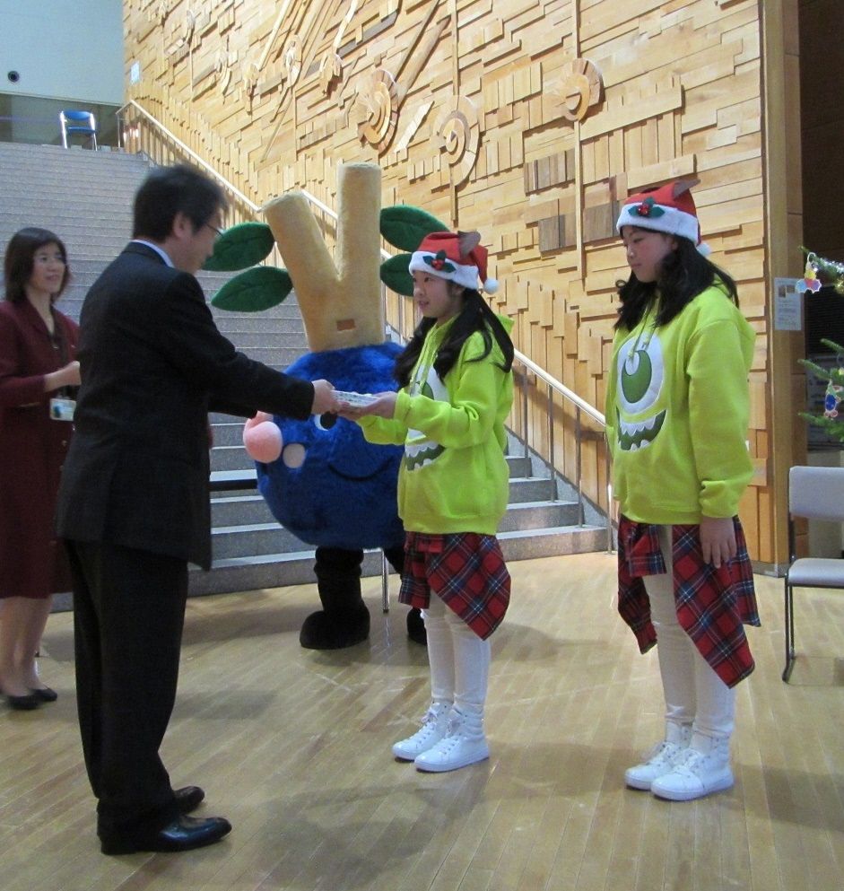 北森建留萌支部畑中副支部長から、代表児童へ挨拶