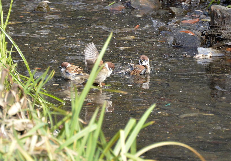 街川散歩スズメ君が跳んだり跳ねたり賑やかな水浴びをしていますな水辺に降り立つスズメ君結構せわしないのですなムクドリ君は顔だけプルプルしてますこちらは湯上がりのヒヨドリ君ですそして順番待ちのムクドリ君ですな街川には至る所に水浴び場所がありますがなぜにおなしところにあつまるのでしょうにぎやかでござりまする