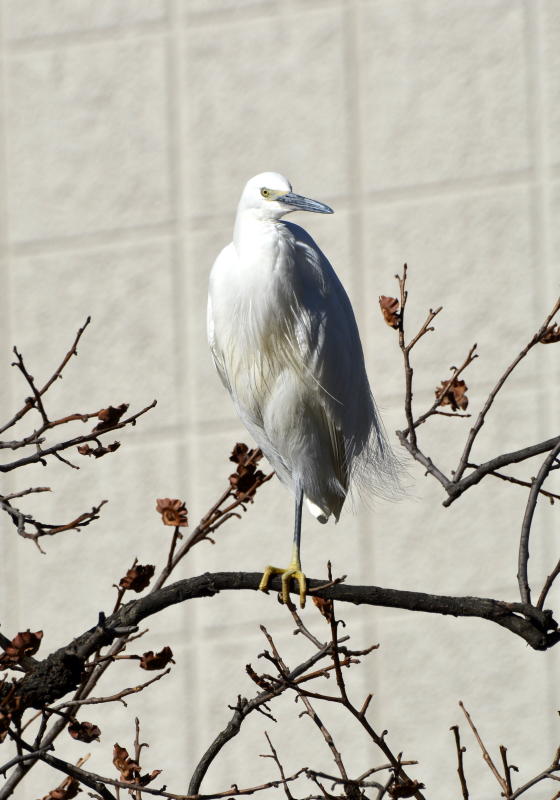 街川散歩コサギ君が樹上に留まっていますな街川で樹上のコサギ君は初めて見ました・・・なんだか初めての多い新年ですアオサギ君は屋根や給水塔の上にいることはあるのですがカキの木で高見の見物ですかな近づいて見上げればこんな顔つきで・・・魚を狙うだけあってこの目つきであれば正面が見えるはないでしょうか一本足で器用ですな鉄棒のようにクルリンと回ってしまいそうですが微動だにしないコサギ君です優雅に羽繕いなんぞいたしまして余裕ですな足指を見ますとしっかり掴んでいる風でもないのですが絶妙なバランス感覚ですな年が明けてからお初の光景が多いように思いますな何かの前触れなのか・・・・よい前触れということにしておくのでござりまする