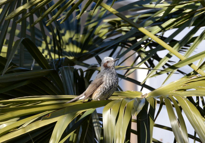 街川散歩シュロの葉の上にヒヨドリ君です葉っぱ折れませんな・・・葉っぱが強いのか?・・・ヒヨドリ君が軽いのか?きっと両方なのでしょうなヒヨドリの体重は70-100g程だそうで冬場は皮下脂肪もつくのか少々多めのようですなメジロが10-15g程スズメが20-25g多少のブレはあるにしても空飛ぶ鳥たちはやはり軽いのでござりまする