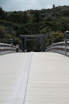 今日は伊勢神宮、内宮のレポートから。でもその前に、Canonユーザにはほってはおけないニュースが。Power Shotシリーズの新製品にいよいよDIGIC5が搭載されるらしい。近々DIGIC5の登場が言われてはいたのでいよいよ来たか…といったところでしょうか。そしてあこがれの5D系の新機種もDIGIC5の搭載は確実、そして処理能力が上がる分、測距点の拡大、連射スピードの向上に画素数3000万画素超えなどは当然だろうか。新機種の発表が楽しみです♪ さて本編はいよいよ内宮:皇大神宮。日本の守護神とも言うべき天照大御神をお祀りしている日本最大のお宮です。震災後半年が経ち、一層の復興を…と一日本人として祈願。五十鈴川にかかるこの橋も、遷宮前に建て替えられました。伊勢の神宮にかかわる宮大工の技術の元にあるのは船大工の技術だそうです。特にその技術が集結しているのがこの橋なんだとか。遷宮は20年に一度。これには諸説ありますが、その一つに定期的に技術の継承を円滑に行うためにも20年という期間を設けているという説もあります。しかし、宮大工の技術を継承者が激減し、もしかしたら今回建て替えられた橋を最後に、独特の技術を使った橋はおめにかかれないかも…ともいわれているそうです。どんな技術かは知りません…。NHKの特集でやってましたが、中学時代、技術家庭科の成績が大概『2』のワタクシには理解できませんでした(;_:)釘を打とうとして指をうってばかりいましたから仕方ナイ!!!!(>_<)第三の鳥居を超えますと五十鈴川のそばまでいけます。一応手水舎はあるのですが、この五十鈴川で手を清める方もいらっしゃいます。この時まで実は気付いていなかった残念なことが…木々の緑色が映えてない…基本、カメラの設定はスナップ感覚のときはピクチャースタイルは忠実、WB(ホワイトバランス)はオート、測光は評価測光…てな具合。せっかく緑が綺麗だったのでそれを活かそうと設定をいじり直し、参拝ルートを進みました。すると・・・全然かわりますよね~ちなみにこの先には内宮の別宮:風日祈宮があります。さらに参道を進みます。 特に内宮の木々はあまりに立派です。先日の外宮編にてワタクシは夜明け前から参拝する、と言いました。基本、外宮→内宮という順がありますので、その順に従うと、内宮の到着するころには日がある程度のぼってますから、この立派な木々からの木漏れ日がなんとも美しいのであります。カメラを本格的に始めて以来、感動するような木漏れ日には出会えておりませんが、あの美しさといったらありません(゜o゜)しかし、上の写真の木のように、参道に面している木々は、参拝者がさすったり、ひどい人であれば抱きついたりしだすので写真でもわかるように木の表面がツルッとしてしまっています。下手すりゃ枯れてしまわないかと心配になります。 さて本殿。撮影は石段の下からという決まりがあるのでもちろん守ります。写真を趣味にする人の中には周りの迷惑やルール守らず、なんとしてもキレイな風景を撮ってやろうとする人もいますが、そうまでして撮りたいか!と思ってしまう。義務なき自由・権利はないんだ<`ヘ´>!!!と変な方向にヒートアップしそうなのでこの話はこの辺で。もちろん震災復興を願って、内宮の別宮へ向かった。内宮の別宮の中でも位の高いとされる荒祭宮(あらまつりのみや)。祭神は天照大御神荒魂なだけにそりゃ位も高いってもんです。しかし参拝者はあまりいないんです。どうでもいい話ですが、写真に映ってしまった黒いTシャツの人、やたらとソフトバンクホークスの松中選手に似ていました(^_^.)あの人は本物の松中じゃ・・・とか思いながら朱印を以来。やっぱりシンプル!!! 雅ですね~錦鯉。将来の夢は『家の池で錦鯉を飼うこと』と一時語っていた変な小学生だったワタクシはこの後内宮の別宮で最高位の月讀宮へ。 それはまた後程。でわ~