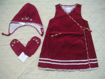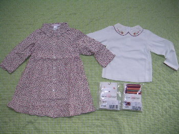 17日にオーダーしたJJが届きました。不在だったのですが夜持ってきてもらいました。Homespun Styleから3点です。ぜひセットで着せたいと思い帽子とミトンも買ってみました。色はサイトでみるよりも落ち着いた色でした。明るいかわいい感じの色かなと思っていたのですが、どちらかというと上品な感じの色です。先日コレにあうブラウスとタイツ2種類を追加でオーダーしてしまいました。あとHSのコーデュロイワンピースも。本当は今回届いたRCのワンピをみてからにするつもりだったのですが、送料10ドルのうちには無理そうなので悩んだのですがいっちゃいました。Riding Clubから2点です。みなさんがすでにお持ちのコーデュロイワンピースはサイズがなく12-18Mにしたので丈が心配だったのですが大丈夫でした。というかこれでジャストサイズでした。左のJSKは2Tなのですが同じような感じです。本当にサイズが小さかったので最後まで悩んでいたのですが買ってよかったです。花柄がとってもかわいいです。JSKもきれいなピンクでした。手触りがとってもいいです。やはりJJはものがいいと実感しました。でも今年はこれで最後かな!?送料10ドルはとっても魅力的なので、たまにやって欲しいなと思いました。
