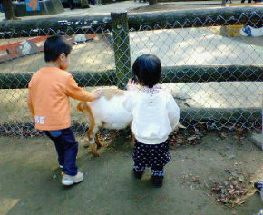 今日は先日行けなかったこども自然動物公園に行ってきました。月曜日は県民の日で幼稚園がお休みなので疲れてもOKなのです。家からは車で一般道で1時間くらいでした。ここは県営なので入場料が大人420円と安かったです。だけど某動物公園(大人1500円)よりも楽しめました。そして山の中にあるのでとても広かったです。ベビーカー持参で行きましたが、坂道が多く疲れました。乗っているのはなぜか大きい子供でしたし。そう、あいあいではなくゆうゆうが基本的に乗っていました。ゆうゆうが乗ると押すのも重たいので疲れました。あいあいは歩いたら、ママ抱っこでした。パパに行ってと言っても、「ヤー、ママがいい~」というので私がだっこしていました。いろいろな動物がいたのですが、ここは他の動物園よりくさかったです。なので、うちの子供たちは近づくと「くさい~」と二人で叫んでいました。面白かったのが牛小屋でちょうど乳搾り体験ができたのですが、あまりのくささにあいあいが「オエ~」の連発。本当にしそうな勢いだったのでいそいで退散しました。あとはレッサーパンダやコアラなどたくさんいました。ちゃんと全部まわりました。オリエンテーリングをやっていて、5箇所廻って動物のスタンプ&パスワードを集めるのです。もちろんやったのですが、結構並んでたので時間がかかりました。希望の作品番号というところがあったのですが、この用紙をとった時は見かけなかったのでどんなものをもらえるかは知りませんでした。最後に出口に応募箱があり、近くに作品一覧があったのですが見てびっくり!だって目に飛び込んできたのはラクダのフン・ヘビの抜け殻・蟻地獄の巣などでした。フンはいろいろな動物のがありました。全部で20種類くらいの中から選ぶのですが、はっきり言っていりません。知っていたら並んでまでやらなかったのにと思ってしまいました。↑これネーミングをみて思わず買ってしまいました。その名もゴリラの鼻くそです。中身は黒豆甘納豆なんですけどね。あいあいは「ゴリラの鼻くそ」と言うと鼻に手を突っ込むようになってしまいました。なので写真でも鼻に手を突っ込んでいます(笑)でも、ココは安いし、動物はたくさんいるしおすすめです。