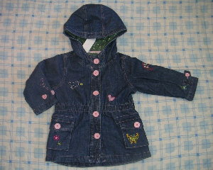 またまた1日遅れの日記です。最近あいあいはお昼寝をしないで6時頃に寝てしまい、夜起きたりするのです。あいあいが寝たとしても、ゆうゆうは10時頃まで起きていたりするのでなかなか日記が書けません。私も寝ようかな?と思うとあいあいが起きてくるので、寝不足で体調不良です。さてさて金曜日はまた電車で1駅乗ってコクーンへ行ってきました。1駅なので自転車でいけない距離ではないのですが、面倒なのと、あいあいが電車に乗ると喜ぶのでいつも電車で行っています。いつもココに行く時はGAPに行くためなのですが、今回はまあヒマだったので行ってみました。でも着いたら真っ先にGAPへ向かってしまいました。特にセールではなかったので空いていました。気に入ってしまったのはコーデュロイのベージュ色のティヤードJSK&パンツです。でもまだ定価でした。聞いたら水曜日に入ってきたばかりということなので、まだまだセールにはならないだろうな~と思います。JSKはいくらか忘れたけど、パンツは4200円だったのでもっと高いと思います。値下がりするとすごく安くなるので、定価で買うのは・・・と思いやめました。デニムのティヤードJSKは2400円だったのですが、欲しい95サイズはありませんでした。90はあったのですが、ジャストサイズだったのでやめました。なぜなら、薄いデニムで、裏地はなく真冬には着れないかな?という感じの生地だったので、今ジャスト買ったら春にはちょっと短いかもと思ったので。100は買うには大きすぎました。来年用と思っても、来年は来年でかわいいのがでるかな?と思うしやめましたが、まだちょっと未練があります。だって、ティヤードJSK&ワンピースってかわいいんだもん。コーデュロイのJSKは絶対GETしたいので、ちょくちょく通おうかな?と思っています。今回買ったのはこれ↓デニムのジャケットです。6200円が1400円になっていました。丈はあまり長くないなと感じがしたのと、95サイズとほぼ変わらなかったので100サイズを購入。帰ってきてゆうゆうの着ていた90サイズのダッフルコートと合わせたら同じ丈でした。袖は長いですが折り曲げればOK。ゆうゆうの幼稚園の送り迎えがあるので、丈は長めの方が暖かいかな?と思いコート類はいつも大きめにしています。真冬はお迎えに連れて行くのもちょっとかわいそうかなと思いますが仕方ないので。その後、お気に入りの中華のお惣菜を購入して帰ろうとしたらあいあいが「そば食べたい」と言うので、フードコートでまたラーメンを食べました。オムライスよりもラーメンの方がいいみたいです。半分近く食べてしまい私は足りなかったです。今日はGYMを着ていきました。見事にバラバラのラインになってしまいました。
