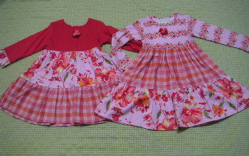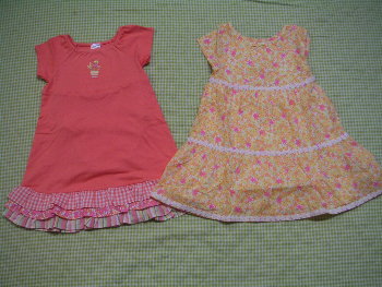今日は先日楽天外で注文したFallPeonyのお洋服が届きました。 欲しかったワンピース2点です。サイズは3Tがよかったのですが、4Tしかなかったので4Tです。丈は60cmと長いので次の秋は多分無理かもしれませんが、春には着れるといいなと思います。(春って1年以上先だわ。。)やはりFallPeonyの色といい花柄といいすべてかわいいです♪このデザインは大好きです。 サイズは左が4T、右が18Mです。全然股下が違います。こちらも欲しいサイズがなく、小さいものは18M、それ以上は4T以上しかなかったのでこのサイズを購入しました。ワンピと合わせる時、長ければ丈は詰めればいいかなと思うので長い分にはOKかなと思いました。実はまだ到着待ちのLULUがあります。先日サヨリさんの福袋で届いたFallPeonyのJSKと合わせようと思いトップスを追加しました。同じお店ですが、発送後だったのでこちらはメール便で届く予定です。こちらが届いたら、そのトップスと今回届いたレギンスと合わせてJSKを着せたいと思います。JSKは早く着せないと短めなので。LULUははまったばかりなので私が購入した時にはすでにサイズ切れがたくさんあり、今年着ているのはぎりぎりジャストという感じで小さめばかりです。なんだかきれいなままサイズアウトしそうです(><)残念そして今回可愛かったので、おまけで注文したのがコレ↓ Tickittyboo(ティキッティブー)というイギリスのブランドのお洋服です。私は今回はじめてこのブランドを知りました。サイズは2~3aで丈は56cmなので、春になったら着れるかと思います。かわいいなとは思ったのですが、正直それほど期待していませんでした。が、届いてびっくり!?このワンピ、実物はとてもかわいいです!!これはいい買い物をしたっていう感じです。あとはLULUのトップス&サヨリさんのWild Roseラッフルニット・Tドレス待ちになります。今月はこれにて終了にしたいなと思っていますがどうなるかはわかりません
