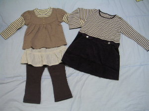 楽天外のお店ですが、Fall Peony のワンピ2点&レギンスを探してみたら4Tがあったのでポチってしまいました。今3Tでも大丈夫なので、4Tだと秋以降なら着れるかな?ワンピ2点&レギンス1点が4T、このレギンスの小さいサイズだと18mのみあったので先日購入したワンピと着せようと思いついでに18Mも頼んでみました。18Mはギリギリだとは思うのですが、ワンピと合わせたいのと1700円だったのでついついいいかなと。。(・・:)すべてセール価格だったので安く購入できたかな?(全部で1万ちょいでした)と思います。