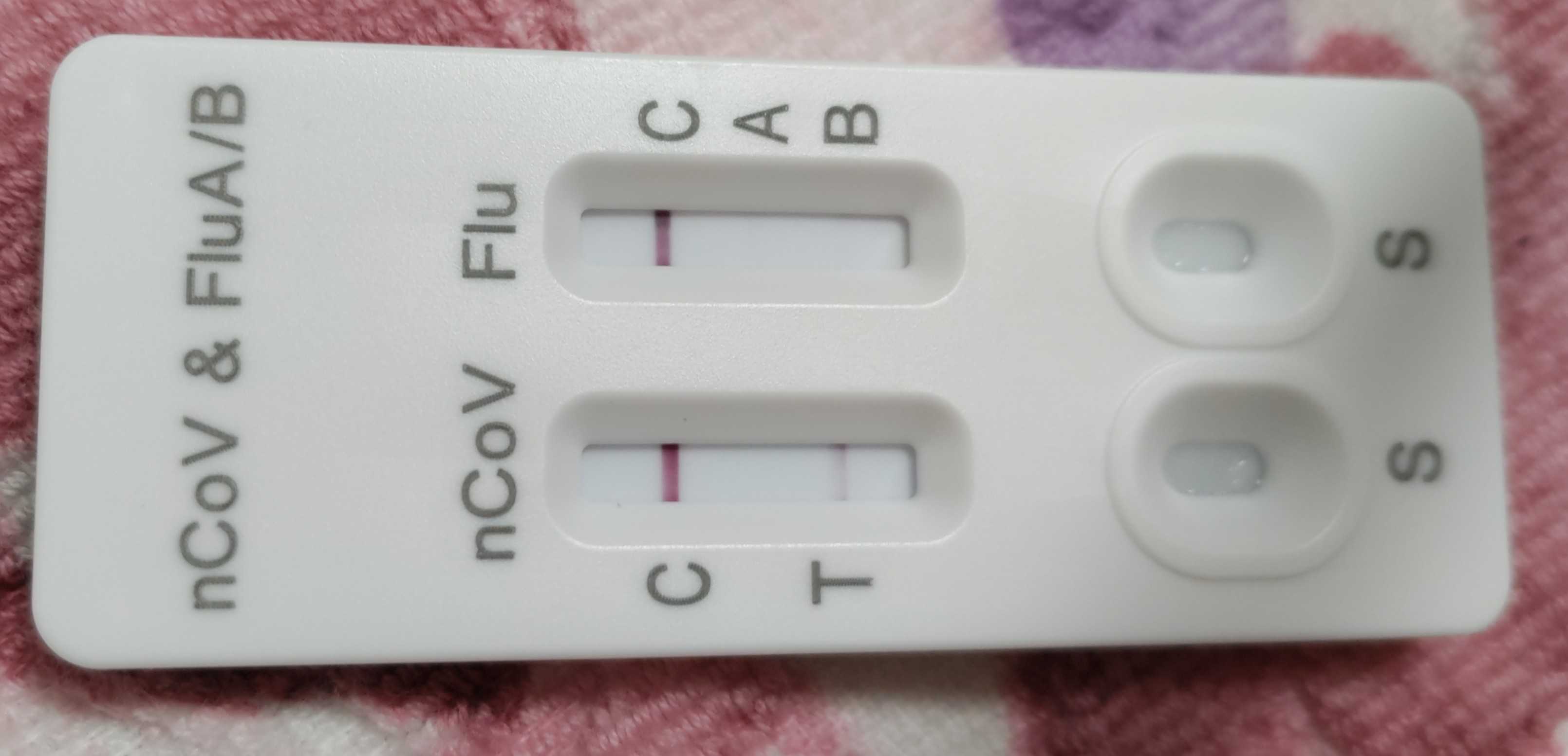 案の定、家に常備してある検査キットを使ってみたら、うっすらだけど、コロナ陽性のところに線が入ってました😭😭