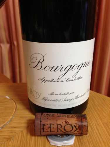 先日のスショに引き続いて開けたのが、メゾン・ルロワのACブルゴーニュです。抜栓してみると、コルクの上部まで赤くなっていて、湿っています。グラスに注ぐと濃いルビー色で、しっかりとしている感じです。ブラックベリー、プラム、シナモン、スパイス、リキュール、コンポート、ショコラ、ロースト香などの芳しい香りが漂い、艶やかで、黒系果実の凝縮感、じりじりとしたミネラル感、トロリとしたコク、きめ細かくシルキーで目がしっかりと詰まっていて、上質感もあって、旨みがしっかりとのりきっています。今飲んでも美味しいですが、まだ、ポテンシャルも高そうです。素晴らしいですね。この日は、鴨ロースなどと合わせてみましたが、相性は素晴らしく、お互いに高めあってくれていました。抜栓した瞬間、不安もよぎりましたが、ワイン自体、香りも味わいもしっかりとしていて、素晴らしかったです。素晴しい作品をありがとうございます。2014年9月 東京都渋谷区内の百貨店(本店)ワイン売場 で購入。関連記事:2013年11月 2011VT ブルゴーニュ・グラン・オーディネル・ルージュ (メゾン・ルロワ)2014年4月 2008VT ブルゴーニュ・アリゴテ (ドメーヌ・ルロワ)