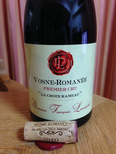 ラ・グランドリュを単独所有しているラマルシュの1級です。ここのワインには何度もいい思いをさせてもらっています。週末、家族の記念日が近かったこともあって、ちょっと贅沢して開けてみることにしました。グラスに注ぐと芳しい香りが漂っています。ちょっと楽しみです。香水、ブラックベリー、カシス、ラズベリー、紅茶、コニャック、白コショウ、花束、華やかで麗しく、黒系の完熟した果実味、伸びやかな酸、心地よいボディ感、しなやかで絹のような肌触り、トロリとしていて、まろやかなコク、洗練された美しさがあって、足腰もしっかりとしています。旨みがよく出ていて、余韻も美しく伸びます。非常に素晴らしいです。開いていて、香りも味わいも華やかで雰囲気も素晴らしく、構成も美しくて飲み応えもあります。開ける前は少し早いかなとも迷ったのですが、今飲んでも十分魅力的だと思います。※ヴォーヌ・ロマネ・1級・ラ・クロワ・ラモーについてこのヴォーヌ・ロマネ・ラ・クロワ・ラモーはロマネ・サン・ヴィヴァンの東側の窪んだところに位置していて、所有者は3人(フランソワ・ラマルシュ、ジャック・カシュー、クドレ・ピゾ)います。ブルゴーニュワイン大全(ジャスパー・モリス著)によれば、1930年と1980年台に(グラン・クリュへの)格上げの試みがなされたが、あと一歩のところで認められなかったとあります。とりわけ、ジャック・カシューがフラグシップとして他のグランクリュよりもこだわりを持って取り扱っていますが、ラマルシュのラ・クロワ・ラモーも非常に素晴らしいと思います。また、機会があれば楽しんでみたいです。素敵なひとときを楽しませていただきました。2012年10月 ウメムラ で購入関連記事2015年11月 2013VT オート・コート・ド・ニュイ・ルージュ2015年1月 2008VT クロ・ド・ヴージョ 2014年8月 2008VT ヴォーヌ・ロマネ 1er レ・スショ2014年4月 2010VT オート・コート・ド・ニュイ・ルージュ