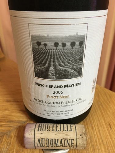 以前に行きつけのショップの方から勧めていただいたミシーフ・アンド・メイハムです。【ミシーフ・アンド・メイハム】このワインは、市場ではなかなかお目にかかれない一押しの逸品です。英国最古のワイン商ベリー・ブラザーズ&ラッド社のブルゴーニュ部門を退職後、アロース コルトンに移り住んだマイケル・ラグ氏、オーストラリア、バロッサ・ヴァレーのトゥーハンズ・ワインズの共同創設者マイケル・トゥエルフトゥリー氏の二人のマイケルにより2004年に設立されたプティ・メゾン。その年の優良生産者のマストのみを購入し、一銘柄につき1樽~10樽の少量生産を行っています。ラグ氏の知識とコネクション、トゥエルフトゥリー氏のマーケティング手腕が相乗し、ムルソー ジュヌヴリエール2005が『Wine Spectator』誌95点・『International Wine Cellar』92点等、早くもメディアの注目を集める存在になってきました。ミシーフ アンド メイハムはワインの内容に妥協しないのはもちろん、バックラベルに生産地、ヴィンテージの特徴の詳細を記載し、一般消費者にとって複雑怪奇なブルゴーニュワインを分かりやすく、選びやすくする改革にも取組んでいます。グラン クリュのラベルにも“PINOT NOIR”の表記を入れる等これまでにない意欲的な試みです。今回入荷の2005年は閉じた状態にあることがありますが、いずれもヴィンテージを反映した優れたワインです。ぜひお試しください。 (当時の販売資料から引用)久しぶりにあけてみることにしました。グラスに注ぐと芳しい香りが漂っていていい感じです。艶やかでトロリとしたコク、カシス、ブラックベリー、トリュフ、リキュールなどの芳しい香り、完熟した黒い果実、鮮やかな酸、真ん中があって、目が程よく詰まっています。スパイシーでエキゾチックな魅力もあって、しなやかで後味も非常に美しいです。ポテンシャルも感じつつ、今飲んでも十分楽しめると思います。いいタイミングで飲むことができてありがたいです。待った甲斐がありました。当時勧めていただいた方に本当に感謝したいと思います。手持ちの最後の1本でしたが、きっとまたいい出会いがあることを信じたいと思います。素敵なひとときを楽しませていただきました。2009年12月 東京都渋谷区内の百貨店(本店)ワイン売場 で購入関連記事2015年10月 2005VT サヴィニー・レ・ボーヌ 1erレ・プィエ 2015年7月 2006VT ムルソー