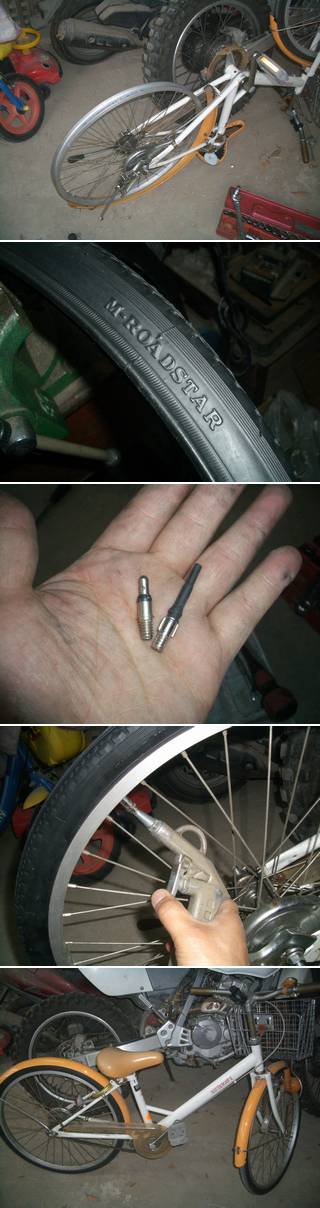 とりあえず、虫ゴムの不良か、チューブのパンクか、見極める必要がある。