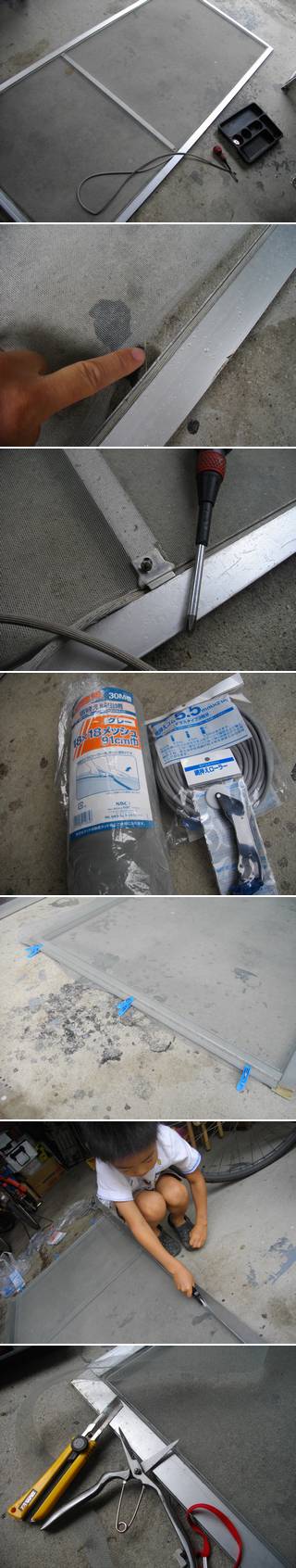 そんで、建具だけになったところに、新しい網を被せる。
