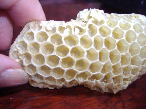 今日の話題は【蜂の子】です。虫が苦手な方は流して読み、下のほうの画像は目をつぶってください。先日、実家に帰ったとき、蜂を飼ってる父の巣箱で蜂の幼虫たちを取り出して持ち帰り、幼虫は蜂蜜に漬け込み、羽化間近の幼虫は佃煮にしました。実は知り合いのおじさんから【蜂の子】を是非お願いしますと頼まれていて父に話したら田舎の畑においてある巣箱に連れて行ってくれて巣箱から蜂の巣を取り出してくれたのでそれを母とちょうど顔を見せにきてくれた長女も一緒に金串や爪楊枝などで一匹づつ時間をかけて取り出したのです。何でも「耳鳴りなどにいいと聞いてサプリを飲んでるから生の蜂の子が手に入るなら。。」と頼まれていたのです。私も少し虫は苦手ですし、気持ちの良い作業ではなかったけど父も協力してくれたのでもくもくと作業して、とりあえず持ち帰りましたので、明日はそれを渡してきます。少し調べたら【蜂の子】は栄養価が高く、特に、アミノ酸の含有量は他の食品の中でもトップクラスとのこと。中でも人体で合成できない必須アミノ酸8種類をすべて含んでいることに注目されているそうです。さらに、ビタミン、たんぱく質、亜鉛、セレンなど生命を維持するために必要な栄養素がぎっしり詰まっているとか。。サプリのキャッチフレーズでは耳鳴りなどにいいとか書いてあったのでそのことも話すとちょうど先日弟が倒れて、その後の体調も耳の様子がまだ悪くて「倒れることが続くようだとメニエール病かもしれない」とか言われたから、母は、耳にいいなら息子にも食べさせようかと思たんでしょう、「佃煮など半分残すように」と言ってたけど、物がものだけに父は「あいつが食べるはずがない。」と言い切り結局全部持ち帰ることになり、今は娘達も見たくないとの事で冷蔵庫の中で隠しています。蜜蜂を管理する中で、オスの蜂の子は、巣箱に一匹しか必要なくて他のオスの蜂の子は邪魔なものだとか。。それを有効利用してるということのようです。それにしても、蜜蜂の世界は神秘で驚異の世界のようです。何十年も関わってる父も、まだまだ奥が深くて飽きないようですから。。以下に写真がありますが、虫が苦手な方はここでストップがいいかも。。蜂の巣です。これは巣箱の隅の空間に自分達で作ったものです。養蜂は最初にベースを準備して、そこに自分達でつくるのですが、隙間にこうして最初から手作りのものを作るそうです。少し見にくいかもしれませんが、綺麗な六角形の巣が、裏表作られていて何とその裏表の位置が綺麗にずれていて、反対側の中心にもう片方の面が半分づれていて透かして見ると、六角形のそこに反対側の六角形の三本の辺がド何中に見えます。説明が足りなくてわかりづらいかもしれませんが、六角形を三等分した形になってるのです。こういう綺麗な幾何学模様を作るなんて凄いです。そして、巣のこの六角形、ただそのまんま裏表六画柱として作ると蜜がこぼれるので微妙に上向きに角度がついていて、横から見るとかすかにVラインになっていました。まだ巣から出る前の蜂の子で作った佃煮です。一応記念に、頑張って一匹だけは食べました。味は自分で作った佃煮ですので抵抗なく食べれたけど、もう結構です。蜂の子収穫の様子です。オスの蜂の子は巣の端のほうに大きな六角形のなかにいるそうです。一つの巣箱に女王様が一匹いて、一度の受精で三年くらい生き続けて春の時期などは一日に何千個もの卵を産むとか。。働く蜂はメスですが、その女王蜂は「受精卵」と「無性卵」を産み分けてメスとオスを産み分けるそうです。ただオスは羽化する日数が少し長くかかるし、沢山は要らないので無駄なく利用するということで昔から羽化直前のオスの蜂の子を取り出して食べてたようです。父はいつも管理する時に邪魔だから、巣の上を切り取り放置してたそうです。そうすると自分達でちゃんと始末して綺麗に巣箱から消していたとか。。21日から24日くらいで羽化するからその直前の21日のものを利用するとかサプリなどではうたってありますが、10日まえくらいに父が処分したからまだ新しいオスが入った巣の中は幼虫でした。で、それを取り出す作業が大変。もう気分悪くなるくらいでしたが、自分が父に頼んだ手前、必死で頑張りました。結局、小さな幼虫から、羽化直前の羽根がそろったものまで色々なレベルのものが見れてある意味、面白かったです。春になったので蜜蜂たちも元気に飛び回っていたので今年もまちゃ美味しい蜂蜜がもらえそうです。ただ父が「いつどうなるかわからないから、この蜜蜂、どうしようか。。」と思案に暮れています。巣箱や蜜蜂たちの価値は300万以上とか。。考えなくてはならないことだけど、今は美味しい蜂蜜がまた絞れるということだけを考えたいと思います。蜜蜂の恵みの蜂蜜を美味しくいただくだけでなく、蜂蜜や蜜蝋を使い、手作り石鹸やクリーム作りに利