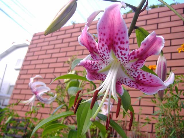 猛暑の中、鮮やかに咲いている《鹿の子ゆり》です。この球根をご近所の方から頂き、植えていたらこの暑い中、元気に咲き誇っています。周囲の植物は長雨でダメージを受けてたり、その後の猛暑で駄目になったものが多い中、空に向かって勢いよく伸びて咲いています。この花は、鹿児島県の甑島に咲き誇ってるユリで、球根もお土産として海産物と並んで売られています。とても海が綺麗で、釣りをする人にも黒鯛などが釣れるので人気の島だし、子供達と何度か海水浴に出かけた島です。暑い夏の日差しにも負けず見事に咲き誇ってる姿からパワーをもらえたような気がします。それからもうひとつ楽しみに咲くのを待ってるのがギボウシ。これは葉が大きいタイプですが、何よりその特徴は香りです。まるで香水のように上品な香りで玄関先が満たされます。あと少しだけど、長女の出産で数日中には留守にするから咲くのを見届けれるか気になるところです。。。ちなみに我が家のギボウシ達は下の三株です。写真のように他の二種は斑入りの葉です。花はもう咲き終わりましたが、今年も沢山咲いて楽しませてくれました。株が大きいし、そろそろ株分けしたほうがいいかも。。ご近所の友達も株分けしたら分けて欲しい止まってるし。。