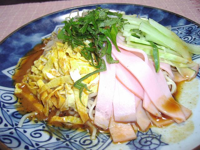 今日も言葉を発する気力も湧きませんが「暑い!」です。食事も義務的な感じでいただくような気がしています。ダイエットなど考える余裕もなく、「体調を崩さないように食べるものは食べておかないと。。」っという感じで口に物を運んでるから、メニューも自分が食べやすいものや好きなもの、何より簡単に出来るものになります。今回は在庫もなくて、ハムと卵とモヤシときゅうりだけのシンプルな具材でしたが、大好きな青シソを庭先から摘んできてトッピング。。こぼれ種から育ったシソがあちこちに沢山あるけど育ってる葉より摘んでいただくほうが多くて、だんだん小さめの葉を摘むことになっていますが、でもその分、柔らかくて口に入れたときも触感は優しくて美味しいシソが味わえます。バジルも明日葉も元気に育ってきてるから次はバジルをいただきましょう。。