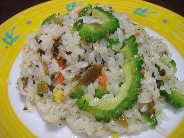 夏の元気野菜【ゴーヤ】を入れた炒飯です。いつもの炒飯もゴーヤを入れると味に力がでてて動きが鈍くなってる体も気合が入りそうです。ビタミンCは加熱で壊れやすいけどこのゴーヤのビタミンCは大丈夫だとか。。さすが沖縄料理の定番野菜。ここのところ夏の野菜が値上がりしててゴーヤもいつもより高めです。いつもならどこかからおすそ分けがあったりして何を作ろうかと《消費》に気を配るところですが、ことしはどこからもまだおすそ分けがないし、最近ゴーヤデビューした私は、時々ちょっと欲しくなる時があるので、先日、近所のスーパーで値段をみて迷いましたが買い求めました。まあ主様は食べないし、娘達も少し小皿に取り分ける程度ですので1本のゴーヤで少しずつ楽しみながら味わうことが出来るでしょう。さすがにまだ【ゴーヤジュース】などそのものを味わう域にはまだ達していませんが。。(^_^;)ここ鹿児島は、台風の後、お天気が時々不安定になりますが、今日も朝から暑くて、動きが鈍いです。この気温差、どうにかなりそうです。。というか、なってるかも。。(ーー;)8日にお産を控えてる長女も、福岡でよかったです。この猛暑のなかで臨月は、地獄かも。。予定日も近づいてきてるし、体調も変化してきてるようですので私も、いつお呼びがかかってもいいようにと荷造り少しして待機中。私の体にも気合いれないと!