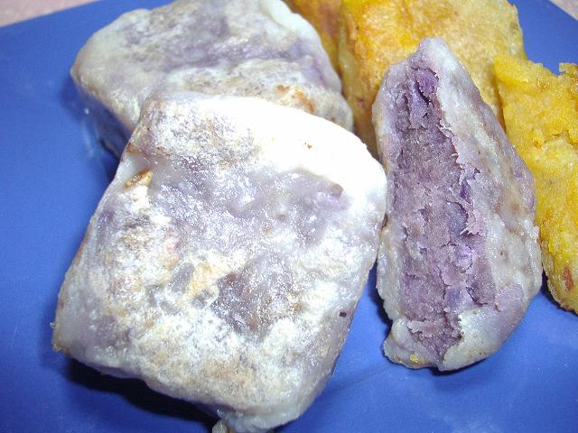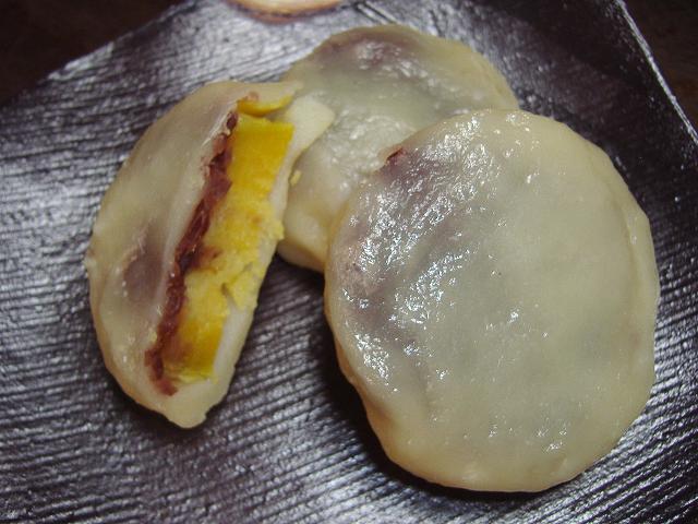 今日はおやつに種子島の紫芋と案納芋の2種で《さつまいものきんつば》を簡単に作ってみました。素材の食物繊維の食感も残したくて裏ごしにはせずマッシャーでつぶしただけ。手抜きという気持ちもありましたが、私はさつま芋の粒々の食感が好きなので。。大きくカットしたものを茹でてつぶし、砂糖は黒砂糖を少しだけ加えて甘さ控えめの味付けに仕上げました。衣は小麦粉に少し白玉粉を加えて柔らかめに水ときしたものを衣をくぐらせては別の面をまた衣をつけてフライパンで焼いていくだけ。。テフロンのものなので焦げ付きの心配はなかったけど案納芋は粘り気があり柔らかいタイプなので箸では崩れそうになり、熱々のものを何とか頑張って素手で作業しました。さつま芋ももう少し冷やしたり、寒天などをいれて固めたらよかったのでしょうが、何せ「食べたい時が作り時」がモットーの食いしん坊。。早く食べたいので手抜きで作りました。でも、素朴なおやつになり、自分用には満足できるレベルかな。。来月はさつま芋のレシピ本などの試作も進むのでさつま芋がいくつあっても足りないでしょう。今でも生協のカタログで種子島の案納芋と紫芋は毎週注文してるけど、他にもスーパーで綺麗なものを見つけたときや、生産者直売所などで少しB級品でも買い求めます。さつま芋の本の編集協力者として参加してるけど出版社から二週間くらい後までにある程度の案を書き出して提出するようにと連絡がきたし、それとは別に、そのさつま芋の本をだすお菓子屋さんの社長さんからも情報誌か何かに乗せるレシピをと依頼されてるしさつま芋がいくらあっても足りません。明日は、農協の上部団体、中央会の主催による「食の安心、安全」の学習に鹿児島でも北部の山間部に出かけてきます。一日遠足の気分で楽しみです。美味しいさつま芋がみつかれば買ってきたいけど重いかな。。昨日はご近所の友人から《初孫誕生祝い》ということでランチをおごってもらいました。一ヶ月くらい前にオープンした○オンの見学も兼ねていったのですがやはりまだまだ人出が多くてにぎわっていました。半日、友人とおしゃべりしながら歩き回ったので今日は足も痛かったし、朝起きた時は案の定喉が痛くて声もかれていました。明日もまたご近所のお友達が一緒なので声がかれるでしょう。。(ーー;)朝晩は冷え込んでるし、少し寒いところだから首にはスカーフ巻いていきましょう。。