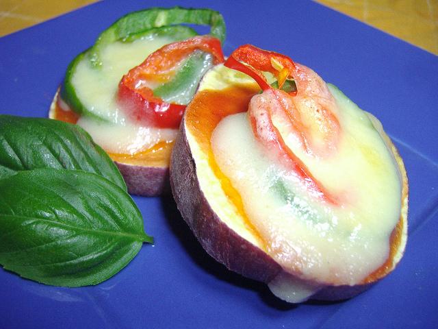 今日のさつま芋をつかったおやつは《さつま芋ピザ?》でした。丸ごとゆでたさつま芋を厚めに輪切りしてピザソースを塗り、ピーマンと解けるチーズをのせて少しトースターで焼いた簡単なものです。ピーマンは我が家のミニミニガーデンのプランターでまだ頑張って実っていた小さいのがあったのでそれを収穫したものです。運よく収穫忘れのものもあり、それが赤く色ついてたのでそれもトッピング。忘れ物で彩りよくなりました。バジルも花が咲き始めていますが、まだまだ楽しめるくらいあり、小さな庭のプランター栽培でも充分に味わえてます。来年用の種をとるのはまだ先かな。。そんな我が家のミニミニガーデン、まだ秋の花苗を植えていないので少し寂しい感じですが、ミントの花が満開だし、猛暑にも負けないで生き残ったゼラニウムや観賞用のさつま芋の花も咲いていて楽しませてくれています。また、ご近所からもらった濃い紫色のバラのようなアジサイの挿し木も近場のプランターに挿していたら何とかついたようだし、近いうちに鉢にちゃんと植え替えてあげましょう。来年は同じ花が咲いてくれるかしら。。