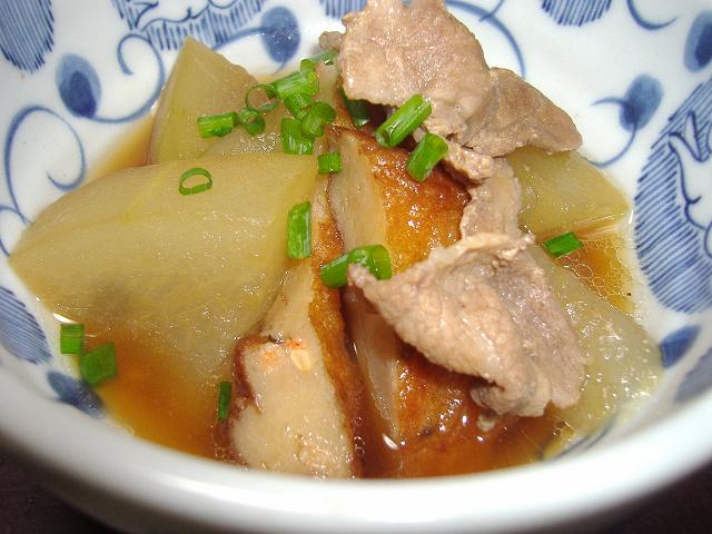 今夜の一品《冬瓜の煮もの》です。ミンチ肉を使うことが多いのですが、在庫の黒豚肉の細切れを利用。ついでに残り物のさつま揚げも加えて煮込みました。といっても水分が多くて柔らかいのですぐに煮えてあっという間に出来上がりましたけどね。。さつま揚げも肉だけとは違う味わいにしてくれるのでこういう煮物の時には重宝する食材です。今からの時期、暖かいうどん類に入れたり、おでんなどに使ったりと出番がさらに増えるでしょう。。そういえば、このさつま揚げのお店の一つが目の前で好きな具材を追加して揚げたてを食べさせてくれるサービスを始めたら観光客の人たちに好評だとか。。定番の野菜だけでなく、チーズなども入れたものなど沢山の種類があり、私も実家に行く時には必ず、母の大好きなさつま芋入りなどを詰め合わせたものを持って生きます。私は福岡の出身だから同じ揚げ物の天ぷらでも少し歯ごたえのあるものを「天ぷら」といっていただいていましたが、こちらでは甘くて柔らかい「さつまあげ」です。近海魚を中心に砂糖を効かせてお豆腐などで柔らかくしてあります。こちらの料理はまず甘くて、おかずだけというより「お茶請け」もかけてるものもあるのでお茶の時間がメインの食事と同じくらいの比重で生活する私にはぴったりのところかも。。そんな南国も昨夜から急に冷え込んできたのでお風呂上りに流石に夏の袖なしでは寒くて、ついに薄手の長袖に替えました。冷え性の私は年中足が冷たくてあまり感覚がないけど、なぜかクーラーで冷え切っていても夏場も靴下は履かずにいます。でもこれが冬場になると、我慢できずに靴下ナシでは生活できず、毎年その機能性アップしたものをついつい買い求めてしまいます。時には足にカイロということにもなるし、そろそろ靴下の準備が必要かも。。犬アンカもそろそろその心つもりの様だし。。。