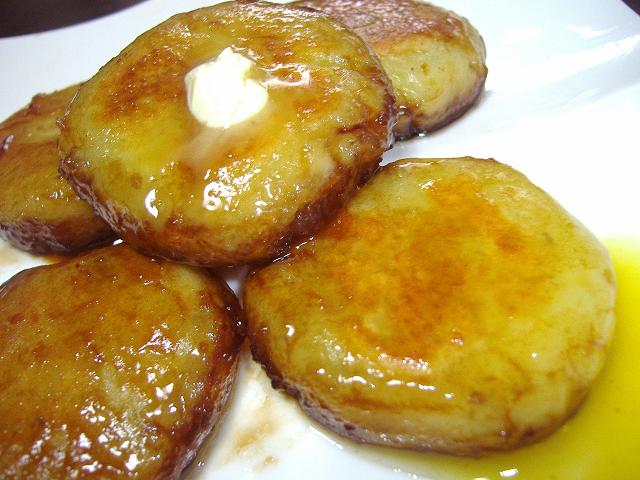 今、自分用のおやつにさつま芋で《いももち》を作りました。ずっと気になっていたおやつで、先日ついに通販でついに買ってしまいました。じゃがいもなのに予想以上の粘りがあることにびっくり!北海道の昔ながらのおやつとか。でもどうしてじゃがいもあれだけお餅のような粘りが出るか、まだ不思議です。私としては当然、さつま芋を使ってつくろうと企てていたのでとりあえず第一弾の試作として作ってみました。さつま芋を茹でてつぶして、片栗粉を加えて混ぜ、形を整えたものをバターで焼いて、甘辛の醤油味をつけて仕上げにバターをトッピングしただけの簡単な手順。。フライパンで焼いてる時から、さつま芋が香ばしくにおってきて楽しく調理できました。ただ味は良かったけど、じゃがいものいももちを食べた時の餅のような粘りはなくて少し残念。。モチモチした食感は大成功だったけど、柔らかさとか粘りは今後の課題かな。。そのうち本来の材料であるじゃがいもでも作ってみるつもりですが、他にもカボチャでも試してみたいし、これが冷えてからの食感も確かめてみて、もう少し試作を重ねてみたいと思っています。じゃがいもでも摩り下ろすという手法もあるようだし、あと何度試作することになるかしら。。それと大好きな種子島の紫いもも手に入れたし、これもまたおやつにしようと思っています。手のこんだおやつもいいけど、最近はシンプルに素材が味わえるものがお気に入りです。「面倒な作業は少し。。」ということもありますが。。(^^ゞ