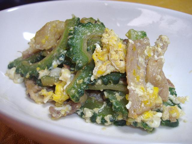 夕飯の一品はゴーヤチャンプル作りました。立派なゴーヤを見つけた時、そのパワーをいただくつもりで 即お買い上げ!まだまだ残暑が厳しく、例年になく30度前後の日が続いたりしててなんとなく元気が出なくてゴロゴロしてるのでここはひとつ《苦さ》で気合を入れてもらおうと買い求めたのですが、優しい苦さに、ちょっと一安心。娘たちも食べるけどあまり苦いものは、まだ苦手なのでこれくらいの苦さでちょうど良かったのかも。。豚肉とさっと炒めただけですが、味付けは塩コショウ、醤油だけでなく、味噌と黒砂糖を少し加えた我が家バージョン。豚肉には本当に味噌が合います。さてテレビなどでは秋の装いになっていますが、ここはまだ夏の半そでTシャツで充分です。足元も、夏場は素足にサンダルが多かった私ですが、「そろそろブーツを出して準備しようかしら?」なんてちょっと考えたりもしますが、まだまだ夏の格好でないと過ごせません。昨日はお散歩の時、沢山のどんぐりを見つけたりして季節は移り変わって行ってるように見えますが、微妙にずれているのも事実。。私の半そでTシャツ姿、はたしていつまで続くかしら?そんな中、昨夜も味覚の秋、食欲の秋に目覚めた犬のプリンに昨夜もさつま芋を持っていかれました。他のものなら厳しく接するけど、さつま芋のことなら許してしまうのがわかっているので堂々とくわえて行きます。まあ美味しいものは皆で共有しないとね。折角、減った私の体重も、元に戻るのは時間の問題でしょう。。(^0_0^)