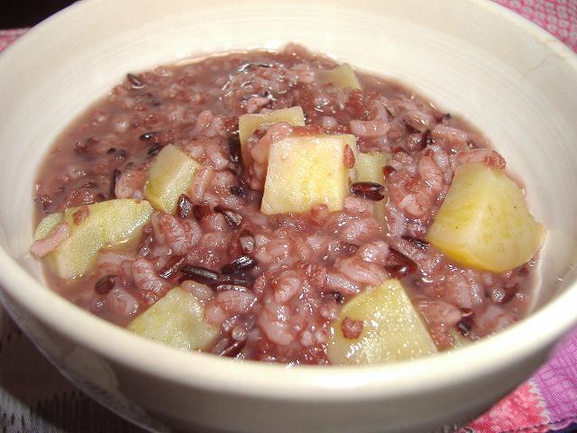 昼のメインは黒米入りの芋かゆでした。黒米が入りすぎて少し色目的にはどうかと思う人もいるでしょうが、ポリフェノールが摂取できるなら、「そんなの関係ね~~」でしょうか。。(^^ゞ他にも大好きな《あわ》も入れていたのですが、黒米の紫色に染められて見えません。さつま芋だけが後で加えたので黄色が残りましたけどね。。味付けは塩のみでしたが、さつま芋の甘さも引き出してくれたので美味しくいただきました。おかゆにすると胃の負担も軽減できるし、夜も残りをいただきます。サボテン繋がりのあとは、ポリフェノール繋がりでした。酸化してかなりダメージ受けてる私の体、どこまでこういう食べ物でカバーできるが自信はありませんが、とりあえず、日々の中で好きな食べ物なら継続できることですのでこれからも出来るだけこういう食物をとっていきたいと思っています。食べ物は命をつないでいく大事なものですから。。今日は一日曇りで、一度パラリと雨が降り慌てて洗濯物を取り込み、そのままサンルームの中で干していますが、なんだか半乾きだし、乾燥機で仕上げしないと駄目なようです。部屋も薄暗いし、ジト~としてて気分も落ち込みそう。。そろそろ主様帰宅だし、夕飯の支度前に掃除機かけて気分転換しようかな。。