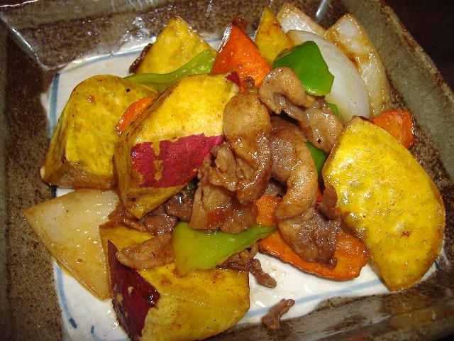 今日はさつま芋がメインの酢豚をいつものようにズボラレシピで作ってみました。さつま芋不足と嘆いていたのがウソのように今は在庫がいっぱいで消費に追われていますので。。今夜の酢豚風は、大きくカットしたさつま芋を少しアク抜きしてす揚げしたものを使いました。後は豚肉、玉ねぎ、ニンジン、ピーマンだけ。。下味つけた豚肉を炒めて、玉ねぎを加え、火が通ったら塩コショウに甘酢になるように酢と醤油とみりん、砂糖などをいれて最後に揚げたさつま芋とニンジンを合わせたたら出来上がり!さつま芋が嫌いな主様も酢豚風の香りに誘われて食べていました。さつま芋はやつだけでなくおかずにもなります。揚げたさつま芋を少し取り分けていて簡単な大学芋にしてデザートかわりに模してみました。砂糖と水、醤油をフライパンで少し煮詰めて飴のようにしたら揚げたさつま芋をいれてかるくゆすって絡めたら出来上がり!これも簡単に出来るし、子供達が昔から大好きなおやつの一つです。さつま芋に囲まれた日々ですが、お天気は良くてお散歩を催促するプリンに負けて昼間もお散歩にいっています。ただ首がまだなれないので寒くて亀さんのようにしてるかも。。(^^ゞ今夜はまだ先日ペーストにしたものが残ってるのでクッキーにでもしてみます。ホクホクしてるけど、すごくアクがつよくて水にだいぶ晒したし皮も厚めにむいたのに出来上がりの色が微妙。。芋好きのプリンに「犬用クッキー」としておやつにでもしてこれは使い切ります。まだまださつま芋は在庫もあるから大丈夫ですが、レシピの試作などで料理する時間が多く、台所に長く立っています。どこまでさつま芋のレシピがそろうか、まだまだ挑戦してみます。